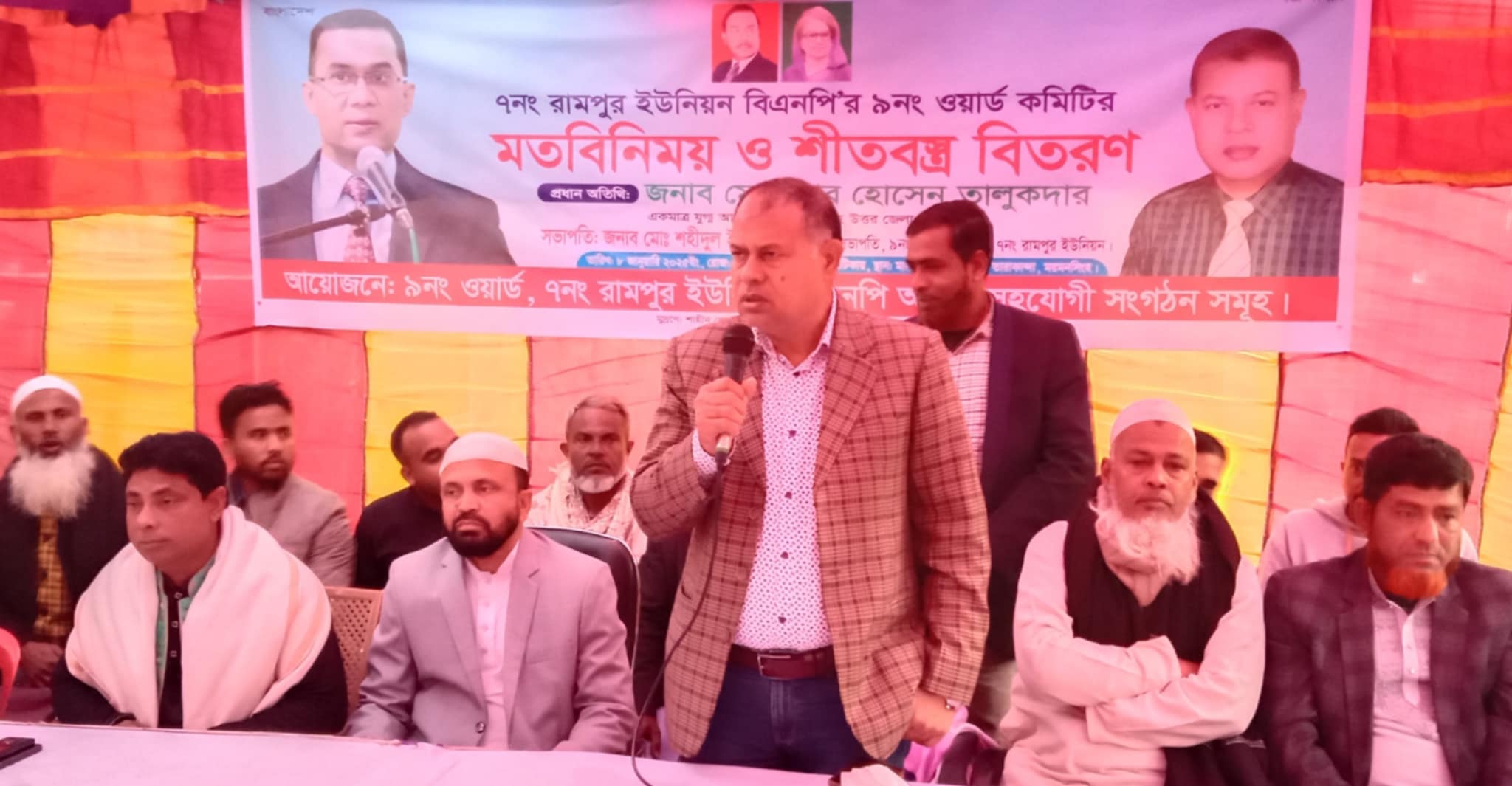 ওয়ার্ড বিএনপির সভাপতি মো: শহীদুল ইসলাম সরকারের সভাপতিত্বে আরো বক্তব্য তারাকান্দা উপজেলা বিএনপির সাবেক সাধারণ সম্পাদক আব্দুস সালাম তালুকদার ও কাজি আব্দুল বাতেন, ইয়াসিন মেম্বার,তারাকান্দা উপজেলা যুবদলের (ভারপ্রাপ্ত) আহবায়ক আসাদুল হক মন্ডল,রামপুর ইউনিয়ন বিএনপির সভাপতি মোস্তাফিজুর রহমান খান,তারাকান্দা উপজেলা ছাত্রদলের যুগ্ম আহবায়ক আবু সাঈদ তালুকদার। অনুষ্ঠান সঞ্চালনা করেন ইউনিয়ন বিএনপির সাধারণ সম্পাদক নুরে আলম তালুকদার।